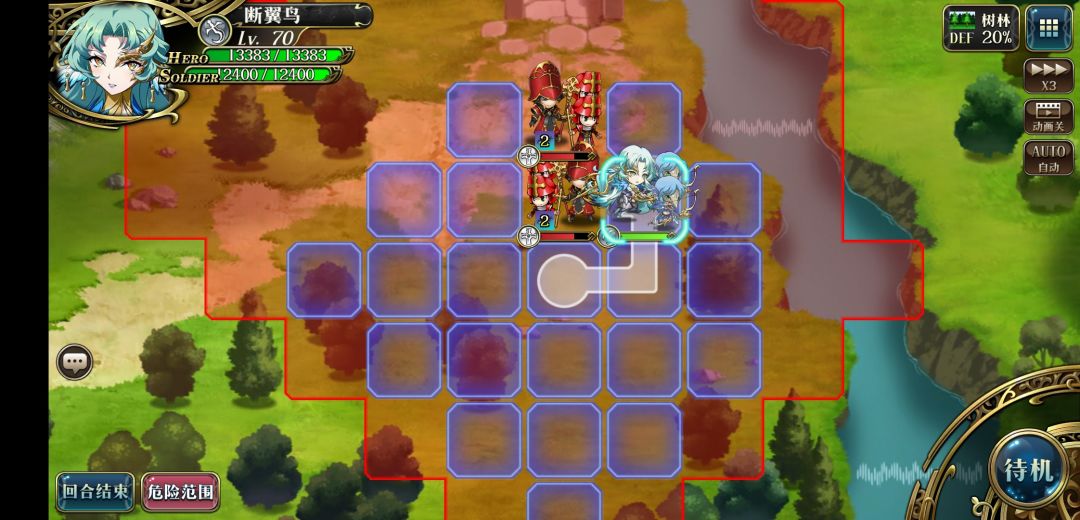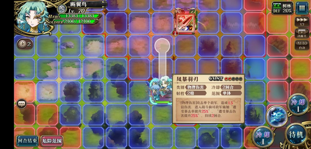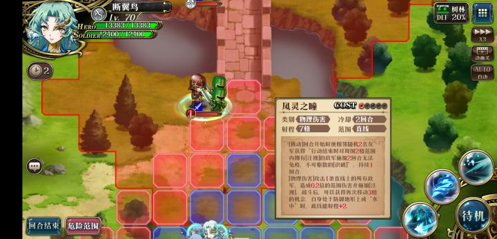 2.走到左上树上往上放风灵之瞳,之后往左走两格待机