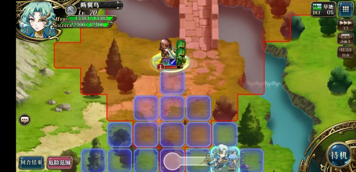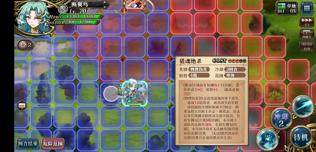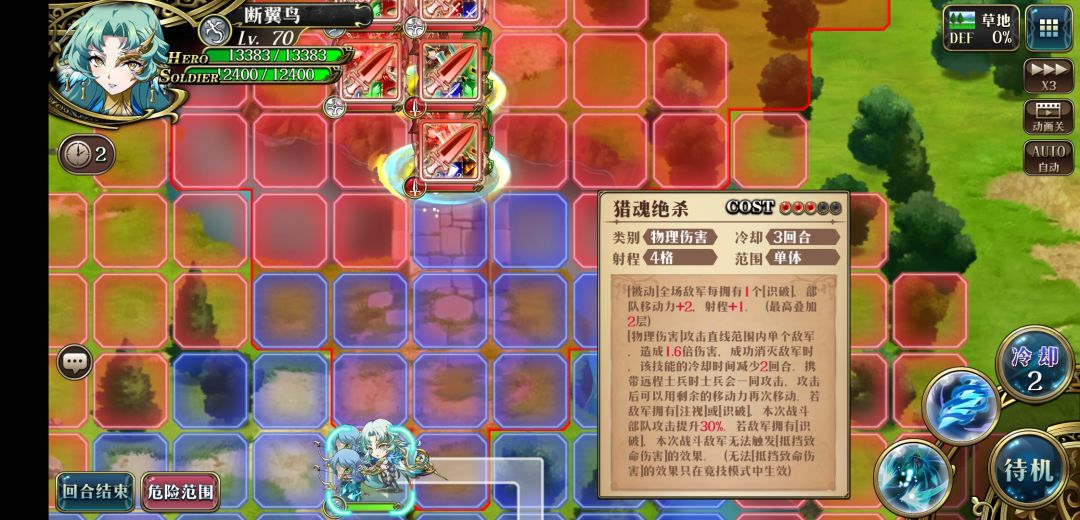 3.第二回合开始走到危险范围边上用3c秒掉法师,原地待机