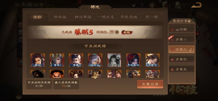本期山河图将池中已开通武将共77个,共70个武将通关炼狱5,不得不说本期山河图是有史以来最简单的一期,传说及以上品质的武将通关基本无压力。明天开启山河图·诸侯伐董。