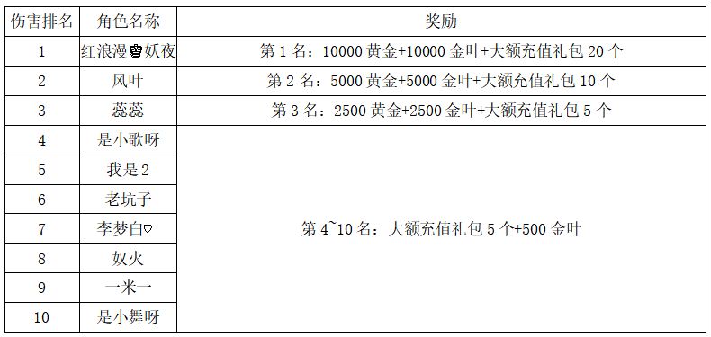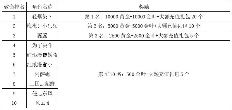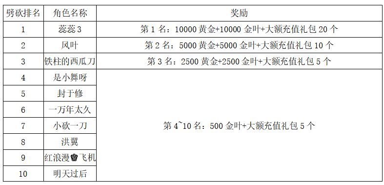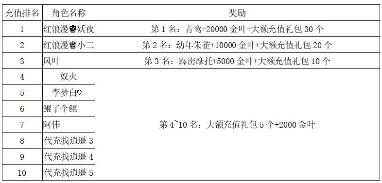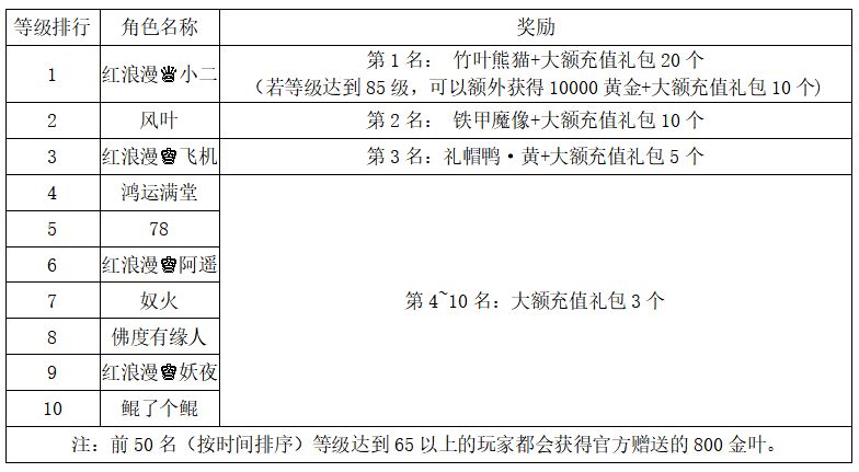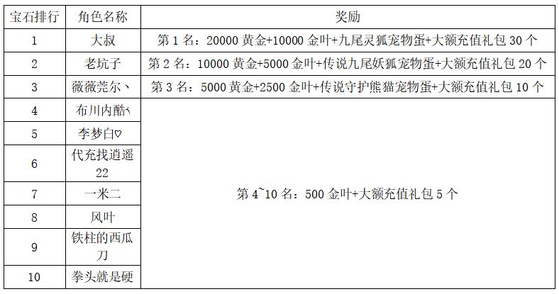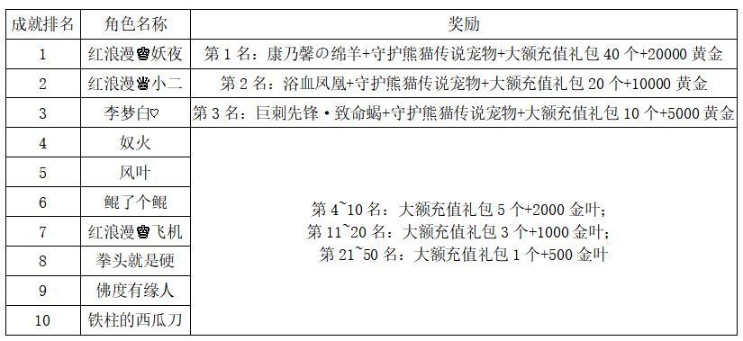 注:以上活动排名均以服务器时间为准。新区排行榜活动如发现存在违反游戏相关规定使用游戏外的辅助工具进行作弊将取消获奖资格。