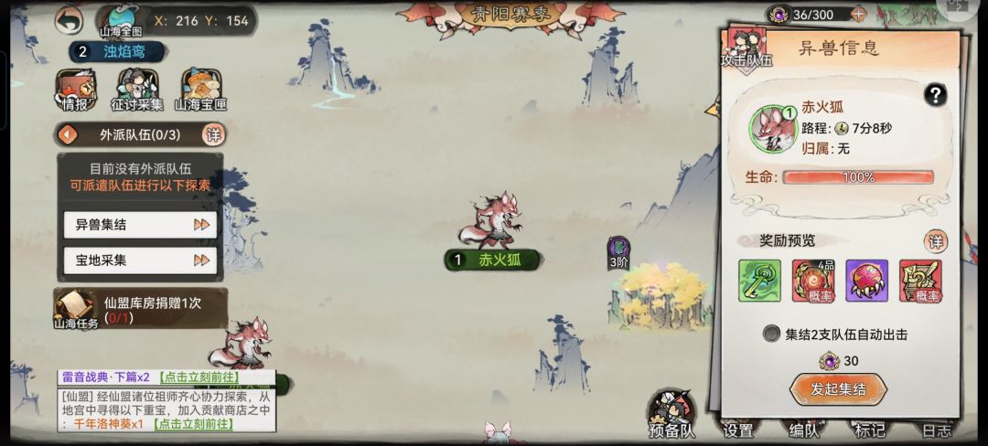 但是有些时候如果没人去打的话,你就蹭不了队,但是你可以选择去集结去打怪,当然有些仙盟凑不齐打三队,那可以选择三阶怪进行或者蹭四阶怪。如果是打怪仙盟太多,可能形成抢怪的情况。