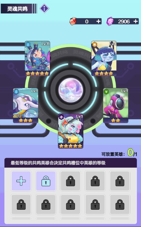 共鸣系统在开服第四天且玩家等级达到35级后解锁,玩家等级最高的5名英雄自动成为共鸣英雄;玩家可以通过挂机获得共鸣精华解锁更多的英雄槽位,放入槽位的英雄等级将会提升至共鸣英雄中的最低等级。