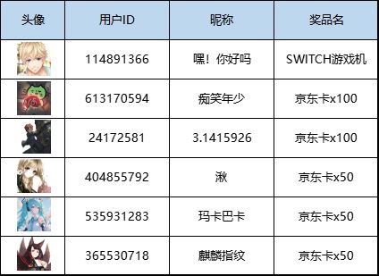 恭喜以上玩家,感谢大家对《唐门六道》的支持,除游戏机外,本次其他奖励为非实物奖励,请获奖玩家关注我后点我头像发起私聊,我将通过私聊窗口将对应卡密发送给您。实物奖励Switch游戏机,我们将会通过您填入的获奖地址进行直接发货,再次感谢您对我们的支持,也请继续关注我们游戏,谢谢~
