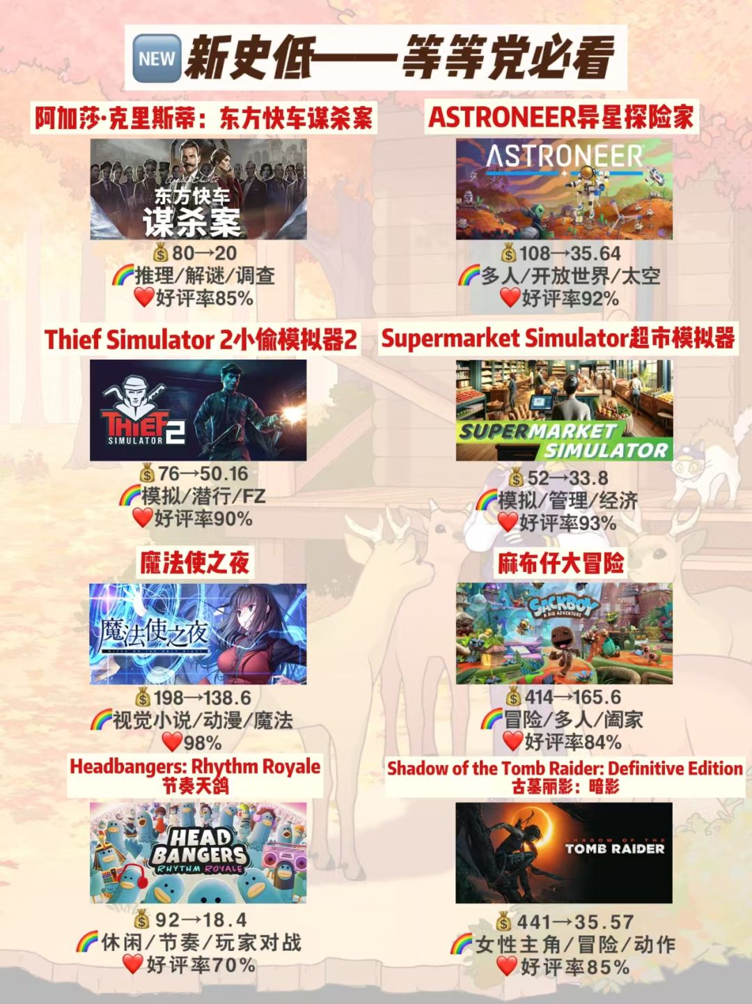 量大管饱‼️steam秋促⑤⑥款🆕新史低游戏汇总