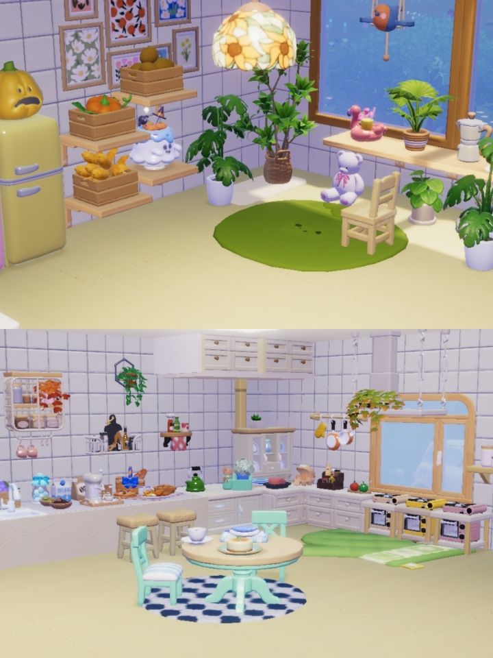 图三:奶油系厨房,旁边做了个小小植物区