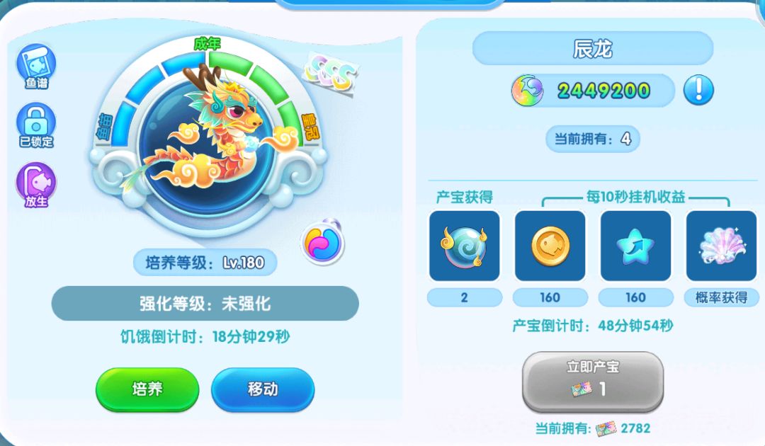 6、变异机制:鱼在成年期突破到皇冠期时,有几率发生变异。个人建议不好变都在变异周变。