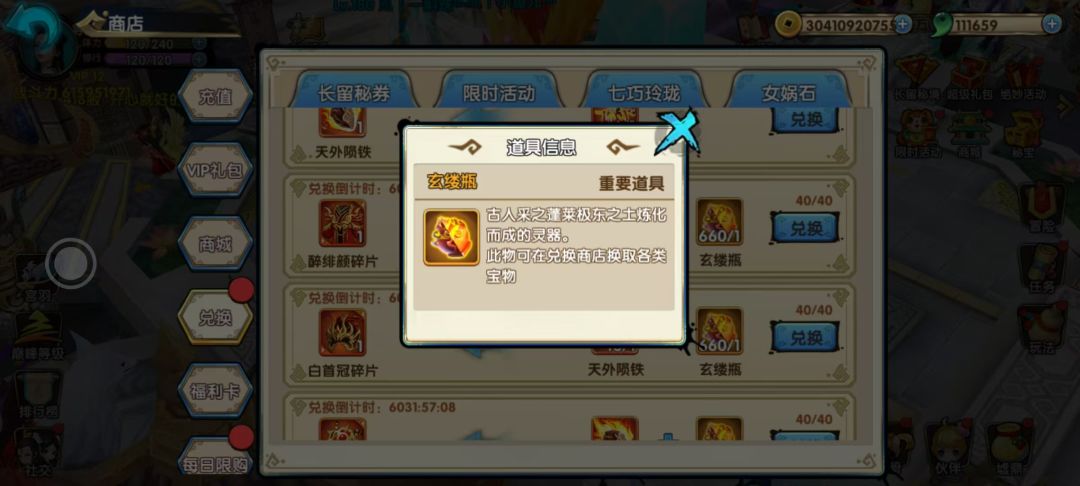 日常参加活动可以获得很多的妖神、异朽、人皇装备放置在墟鼎又极为占用墟鼎空间导致,每次进入需要都要找很久。对的,找个东西非常麻烦,这时,我们就可以把没用的妖神、异朽、人皇装备在商店中兑换成天外陨铁,当然这个兑换也不是一蹴而就的,每天仅仅可以兑换一次,所以我们需要每天来商店兑换陨铁。