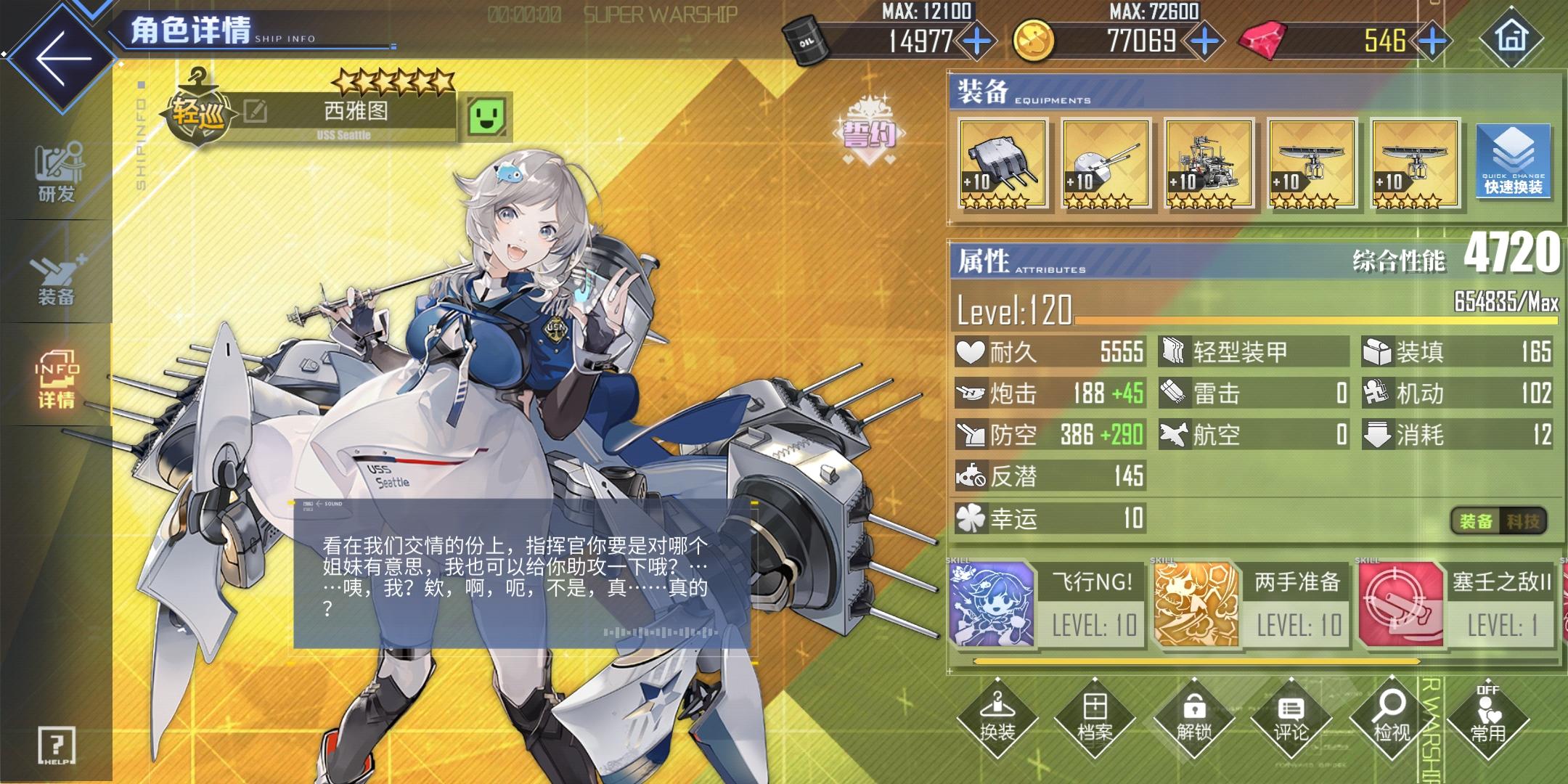 科研/米国船,面板肯定拔尖,防空炮还有点马桶盖,这两个也还凑合,我还是觉得1个防空雷达好,可以换舵机/紫维修,后面13图前排生存压力很大,特别是开荒期,还有因为画风问题嘛?鼻子看起来像俩鼻孔,不过还蛮卡哇伊哒……🎻🎉