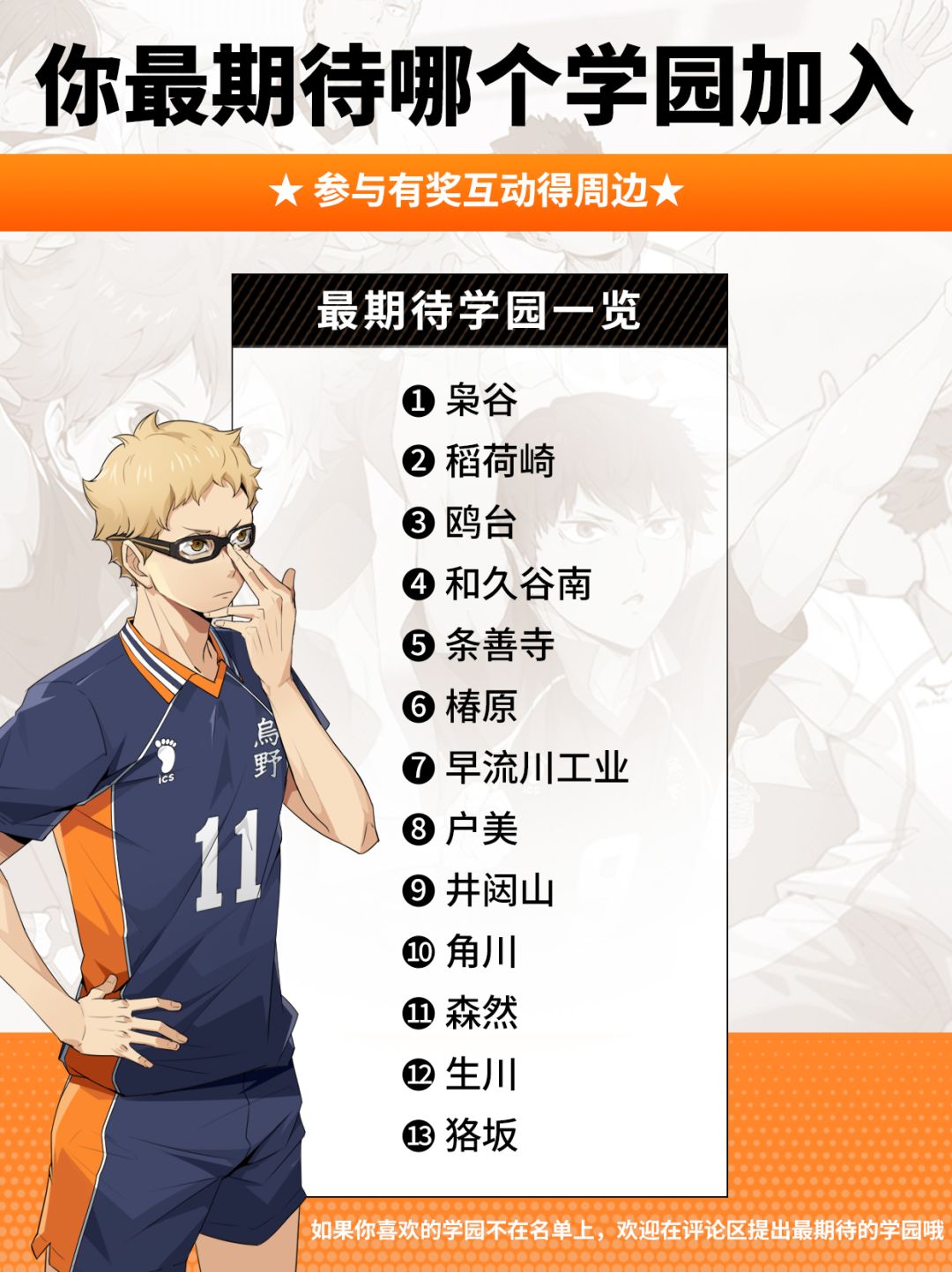 🌟目前《排球少年:新的征程》中已经出现了乌野高中、音驹高中、白鸟泽学园,下一个你最想看到的高中是哪个呢?
