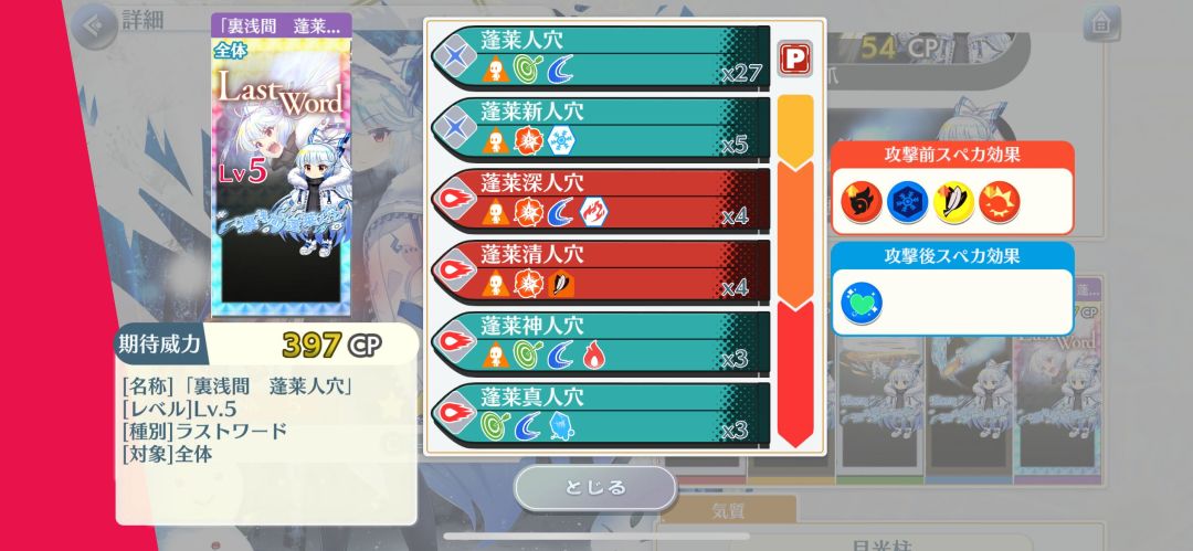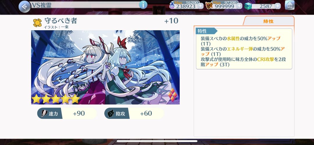 特攻:135段:高贵者、迷途竹林、永远亭、教师、蓬莱人、超胜负服(这又是啥?冬系列对应的服装?)、冬,