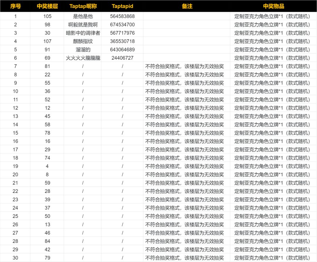恭喜以下旅行者在本次活动中获得【亚克力角色立牌】*1(款式随机)!