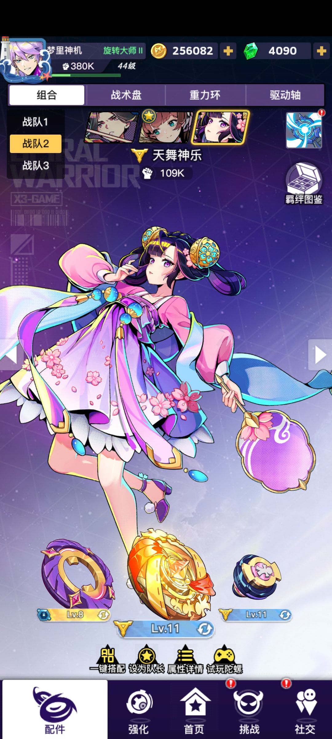 注:天舞神乐容易封不住boss奥义,所以如果有炸裂巨拳换炸裂巨拳,芯片一样。如果缺伤害优先提升天弓的技能伤害芯片和金色琴弦的百分比攻击芯片。
