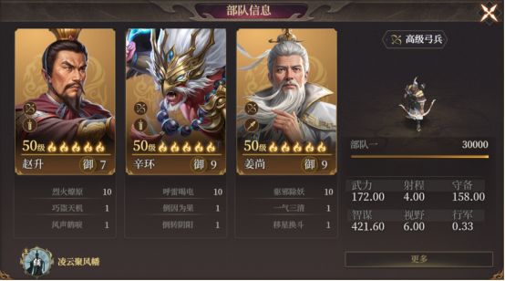 也可以玩弓兵远程,纯智谋输出的赵升+辛环的搭配,作为远程弓兵,高辛提供稳定禁疗,克制肉队。赵升作为队伍的核心输出。