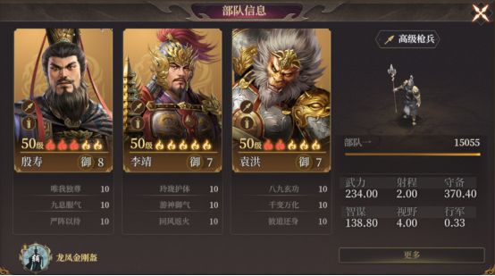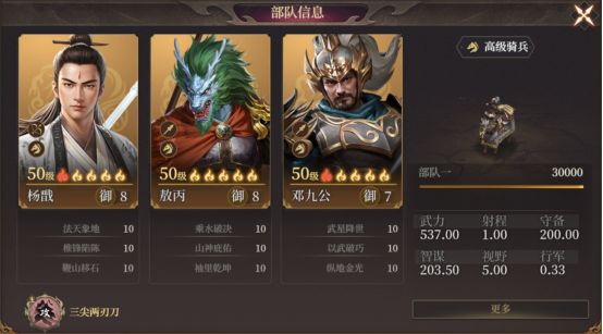 - 队伍的战斗模组是武力和追击战法