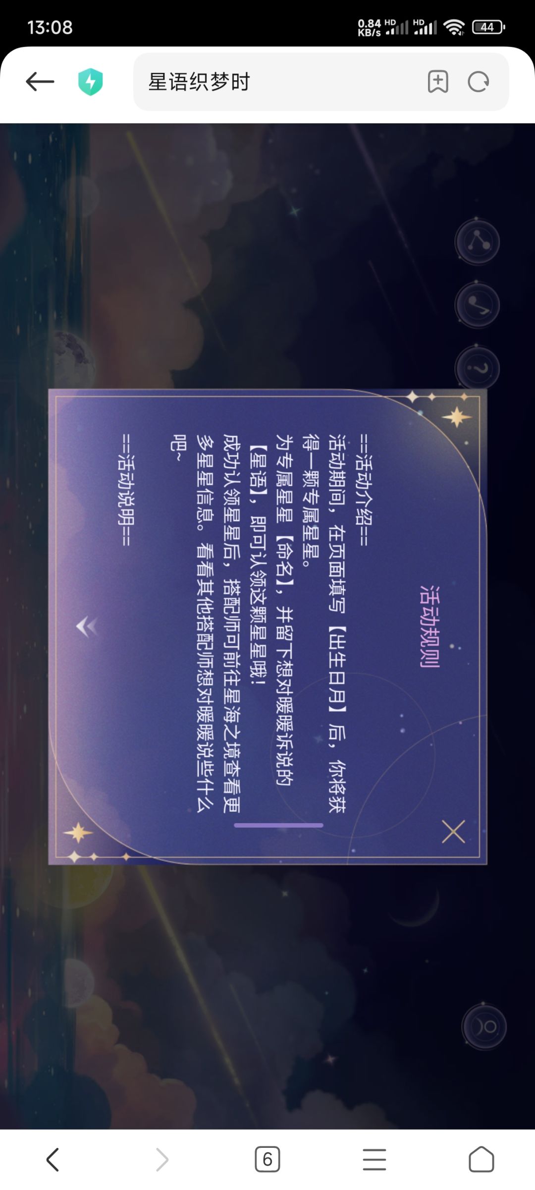 12月6日结束,在链接填写自己的生日信息,获得专属星星可命名,6日的直播或其他活动会随机抽取随机星星作为背景(注意隐私安全)