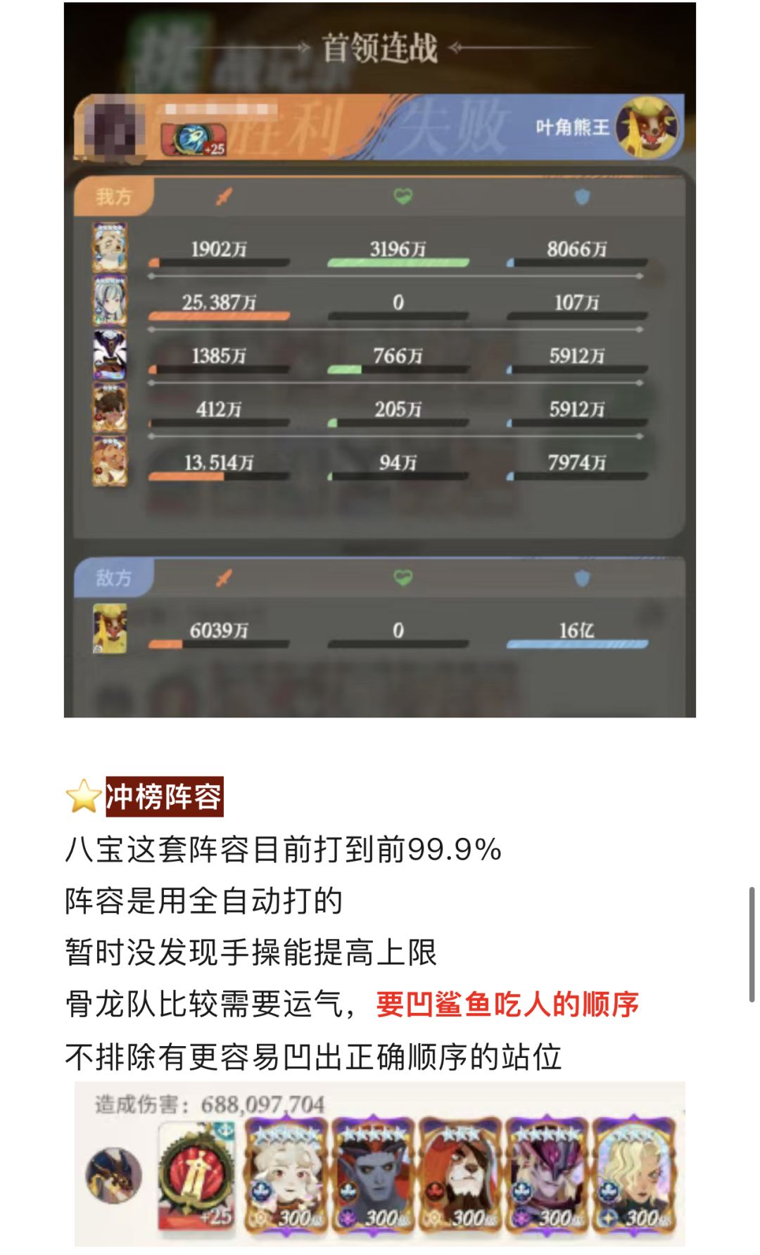 【远征八宝袋】第二轮首领连战(骨龙、熊王)阵容详解