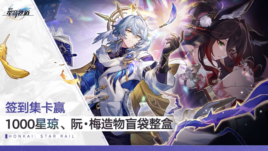 活动期间,开拓者完成签到集卡即有机会获取1000星琼、阮·梅造物迷你盲袋整盒等奖励~