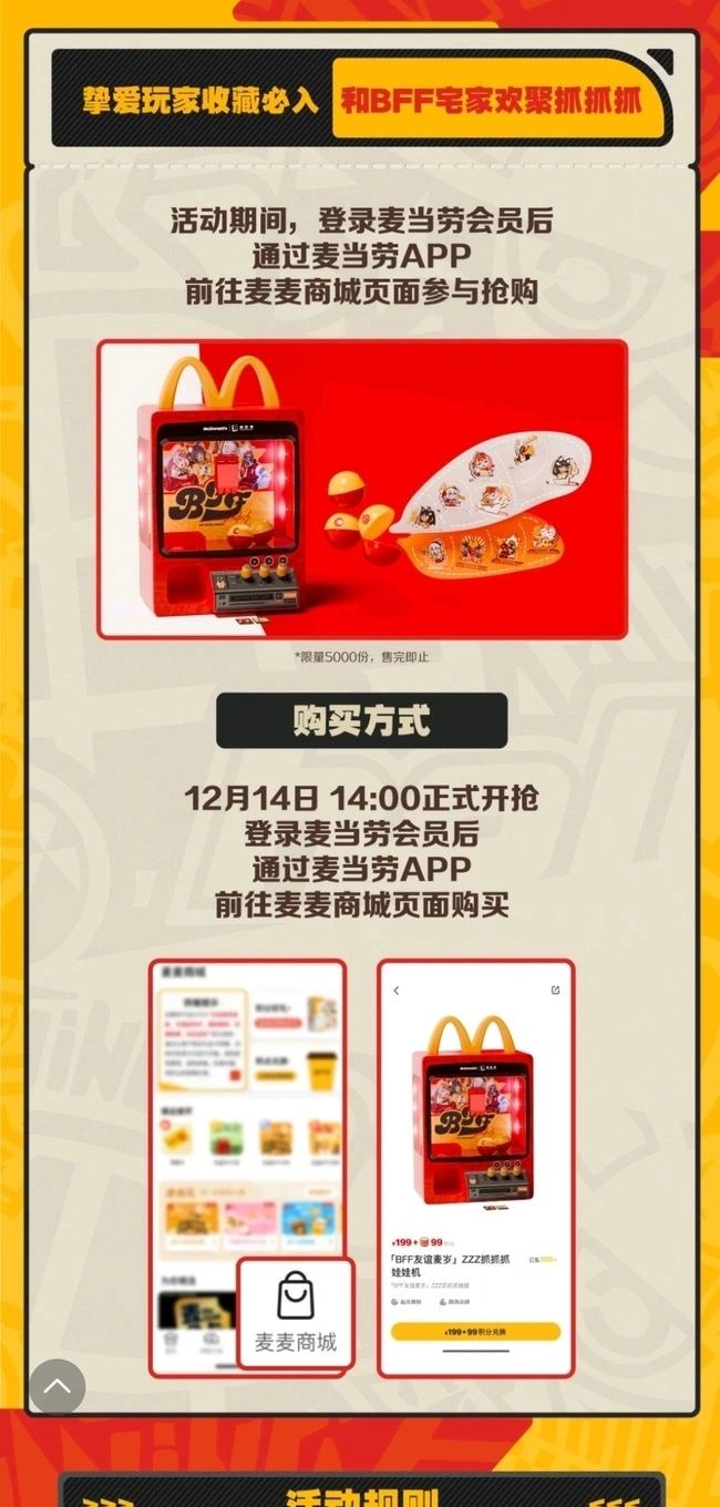 1. 活动期间,登录麦当劳会员后,通过麦当劳APP前往麦麦商城页面参与抢购。