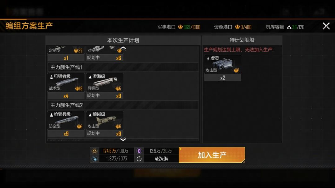 舰队生产交互优化,新增了根据编组方案,将缺少的舰船快捷加入生产的功能。