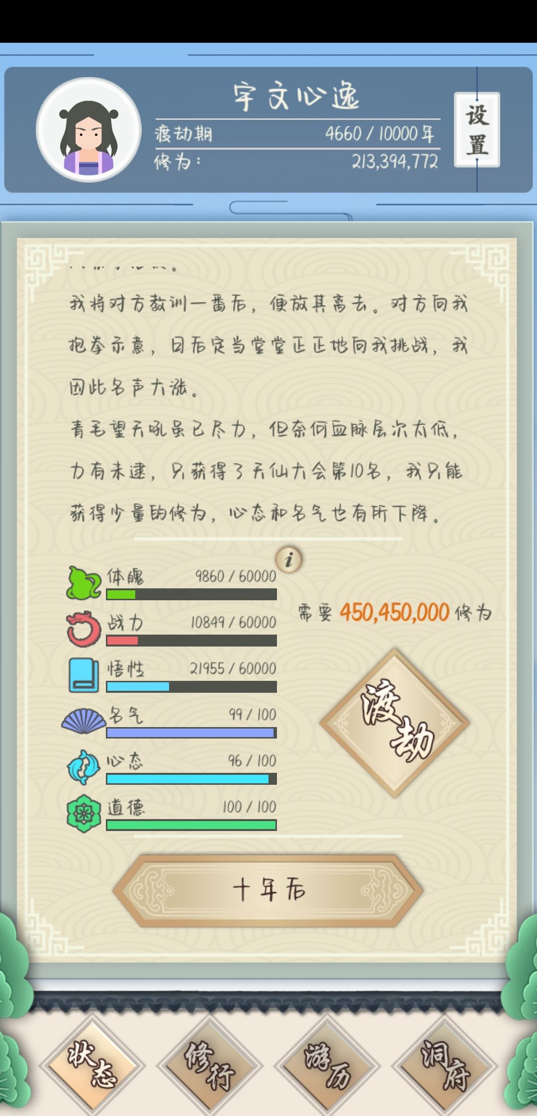 ②。还有还有大乘后,买新仙府后会有子嗣名额,这个时候,狂点“十年后”(大乘期无限生命不浪费哦!)就会无限刷子嗣(我最高刷了28个宝宝)。