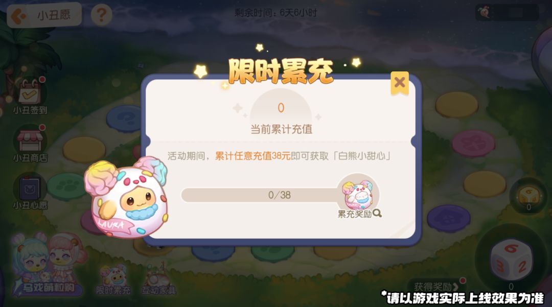 活动介绍:活动期间累计任意充值38元即可获得LAURA联名小精灵服装「白熊小甜心」。