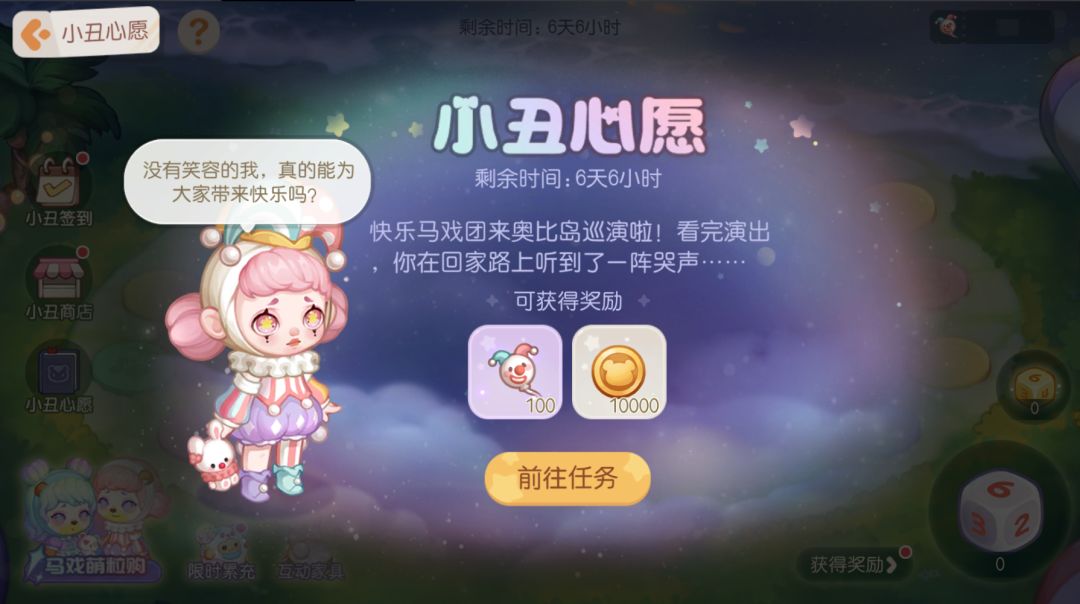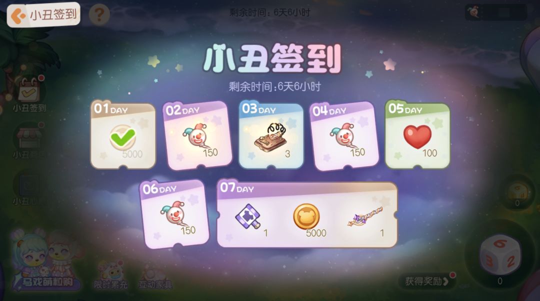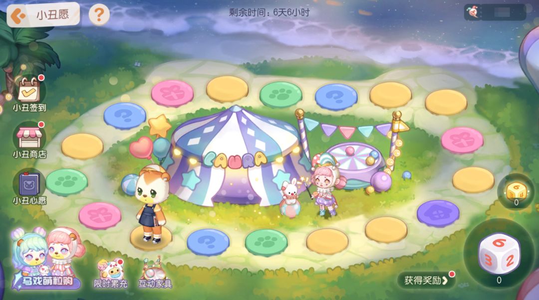 活动介绍:灯光亮起,音乐响起,欢迎来到充满快乐的马戏团!活动期间完成每日任务可以获得骰子,掷出骰子前进对应点数。累计投掷指定数量的骰子还能领取主办方特地准备的「小丑气球」哦!