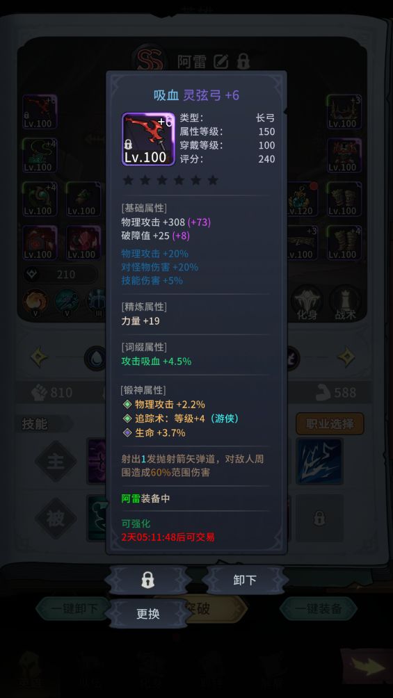 必要装备吸血武器,跟游侠100吸血套二选一