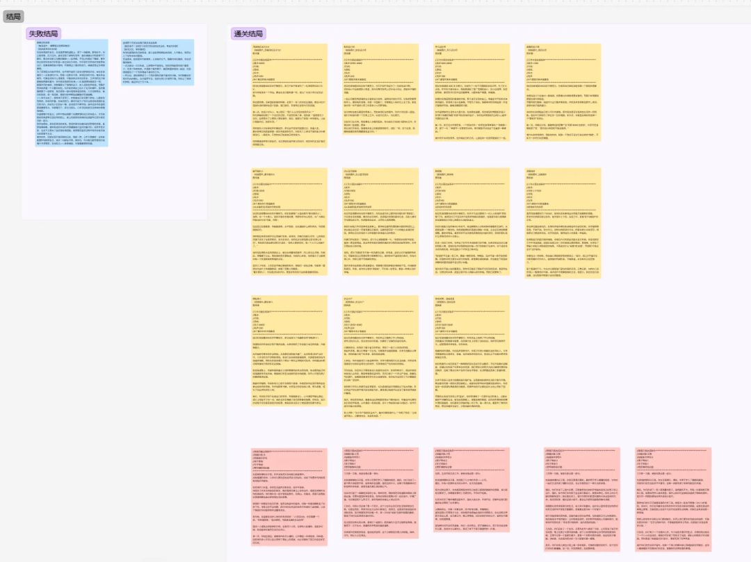 例如这些缩略图,一部分结局和角色故事设定,每一个便签里的小黑点都是文字,一个便签里小几百个字。