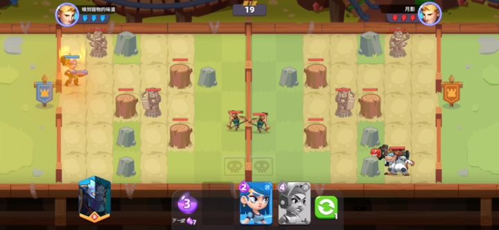 这篇入门攻略(4阶升5阶)提供一下新手玩家最头疼最卡梯次的思路。进入4阶,各位萌新都已经对卡牌有一点了解。4阶是分水岭。只用系统卡组,已经不能顺利赢下局面,需要丰富卡池(抽英雄心愿优先万金油治疗师)。原因自行判断。商店的刷新买卡或者抽卡都可以,看到火箭鼠跟喷火者就无脑入手吧。别问为啥,问就是这两货在5阶有非常好的位置(紫卡无敌)!如果在3阶前,弄到了火箭鼠,喷火者这两个核心卡,将会变得十分简单。第一个图片,是4阶经常遇到的图片,由于测试号没有抽到上面两个核心卡,将就用着。开局先找火箭鼠(没有就用女枪手~发子弹真慢),然后找肉盾(喷火者最佳又肉又输出)。放位置如图3。空缺位置记得放奶放其它输出。至于指挥官,大部分萌新还是蚁将,因为没有抽指挥官。蚁将上场先放中下,优先打掉进攻怪物的血量减轻守家门将压力,中后期放到中上,为最后的决战提前准备。温馨再提示:指挥官移动有次数限制,大招释放后会再次蓄能。最后希望各位萌新快速上分,我们山顶一起观风景。