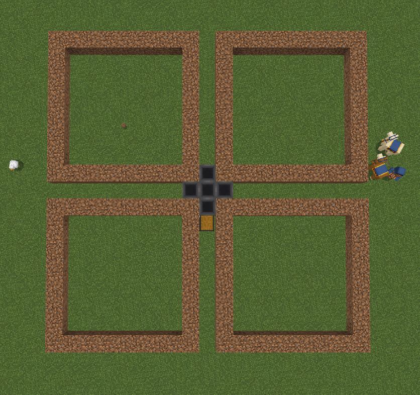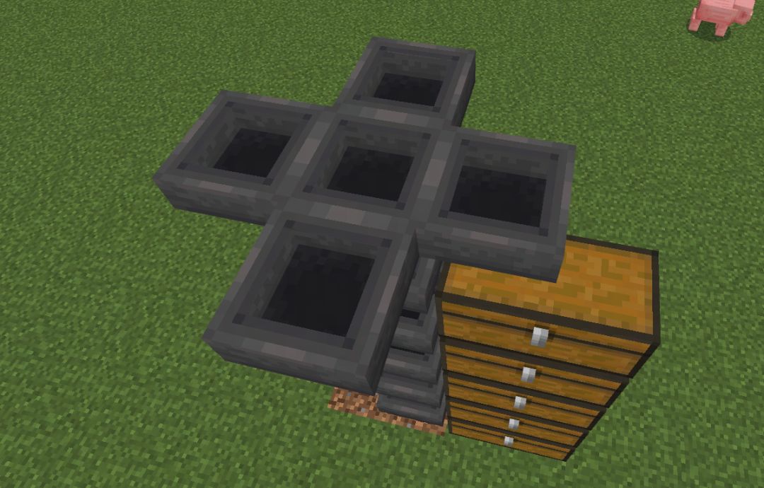 记得要在漏斗矿车的四个角上放置半砖,防止村村越狱!
