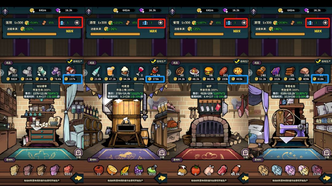 酒馆:消费中下,战士消费最多【毕竟前排挨打多了要喝酒消愁】,满级300级,英雄心情值不足时回到酒馆喝酒增加心情值,初始1个位置,40级后2个位置,至尊特权卡增加1个位置,可以花费钻石买两个位置【三个位置就够用了,大佬随意】