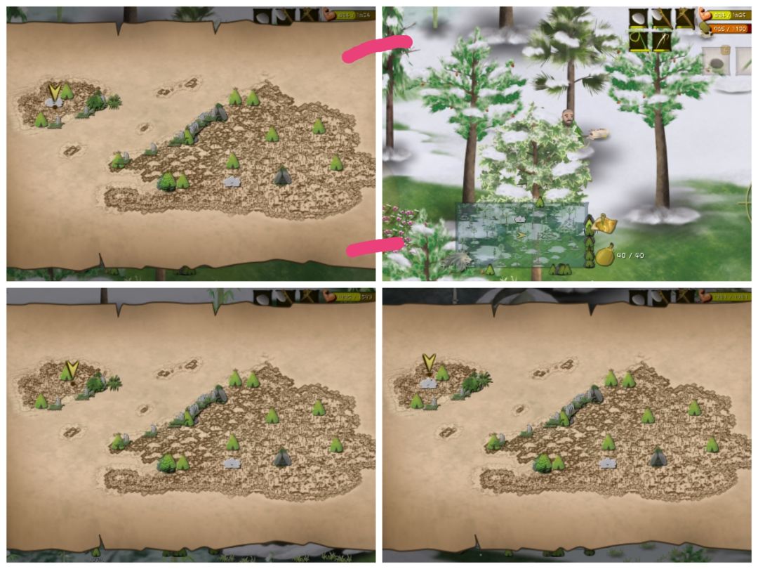前四张为松鼠刷新点,红色为地面上的松鼠,这个比较难找,好抓,蓝色为树树上的松鼠,这个好找,好抓。后四张为兔子刷新点,没啥特殊的,只有小岛下半部分那个兔子洞被树挡住了,第一次可能会找不到位置所以特意标出来。整体上可能有错漏重叠,不可尽信。人参雪莲具体位置在下面,图太多一次放不下。