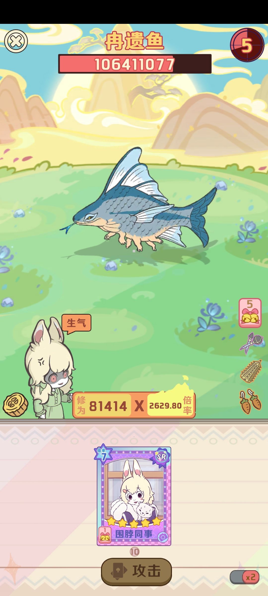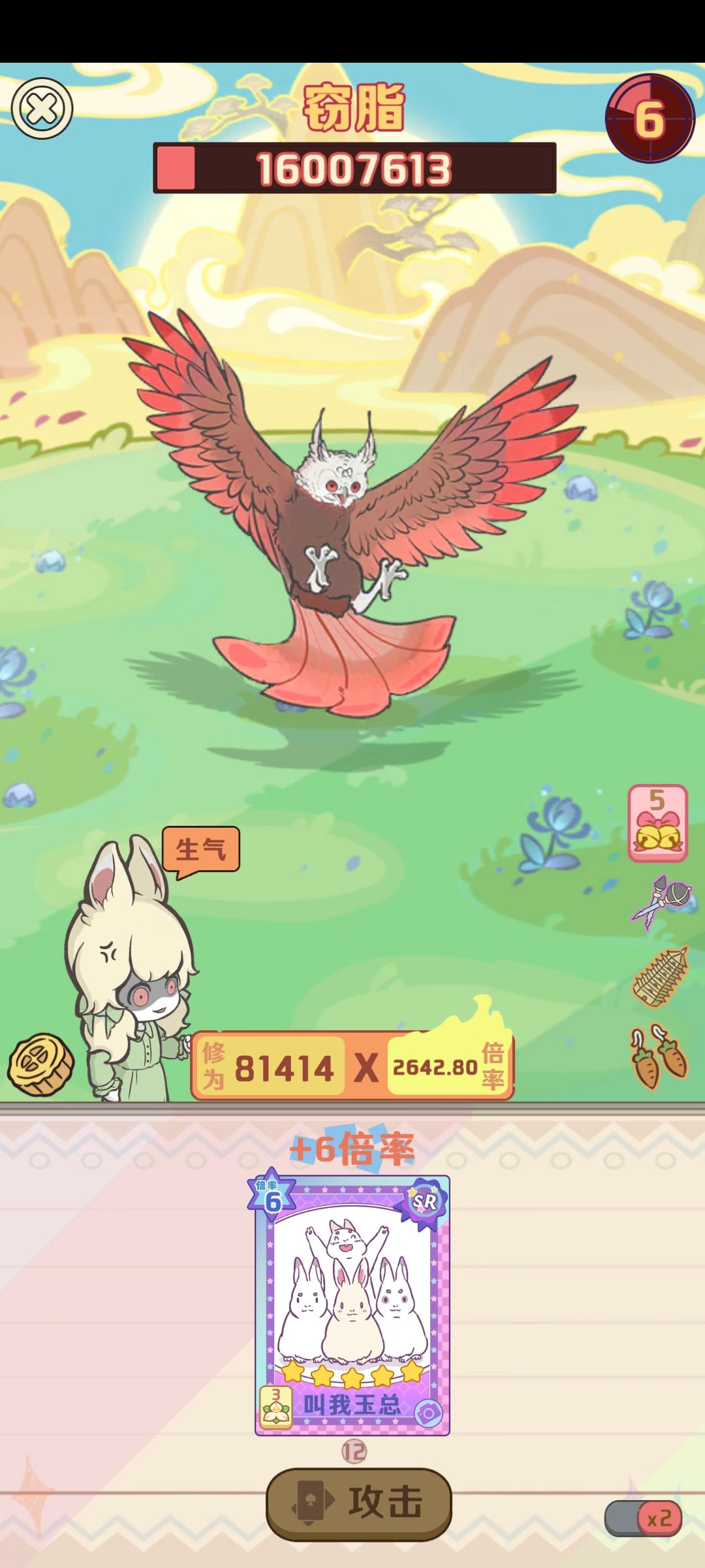 还有一个比较特殊的推荐,三星及以上双枪(有条件的可以满星天衣配四星双枪,第一回合直接触发雷公),双枪其实也是好东西,可以替换宝塔,给你暴走牌增加基础倍率,这样总倍更高,不推荐满星天衣也是因为没位置给他,而且收益不如雷公和双枪,毕竟他俩可以打配合还能给二号位暴走牌加基础倍率,满星天衣的话用处不大,玉总不缺那点倍