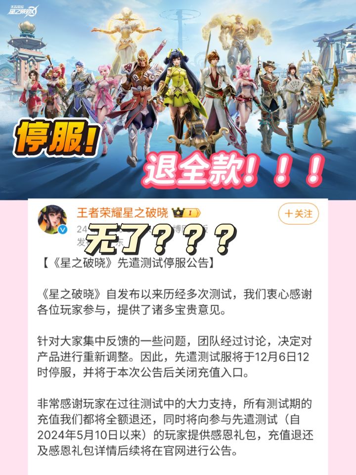 12月3日,王者ip手游《星之破晓》官宣停服!