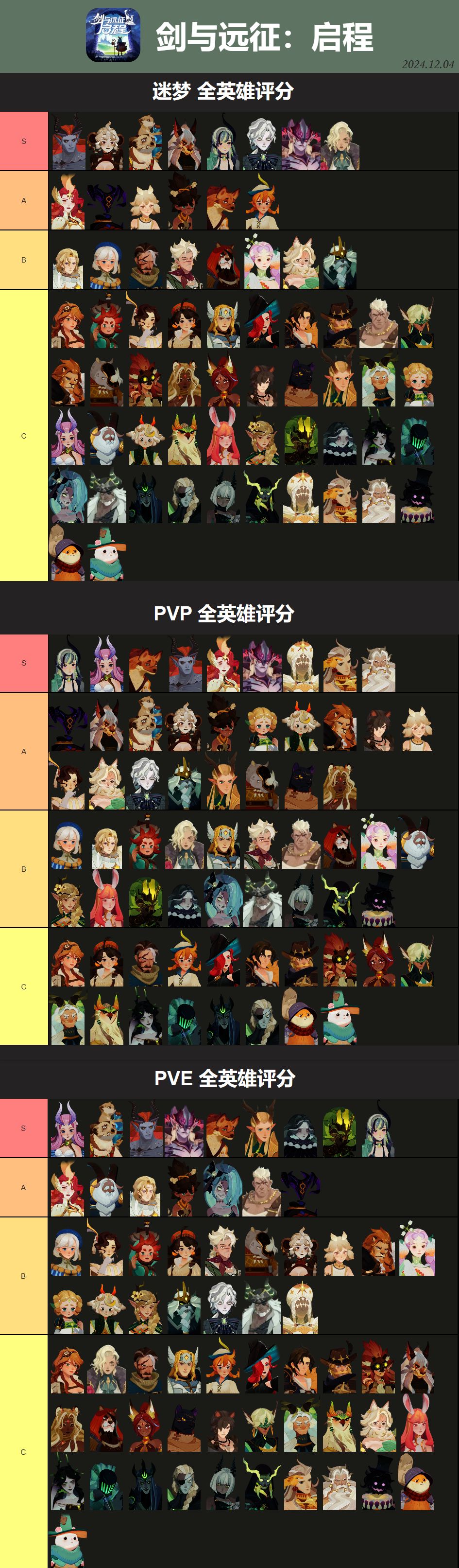 上一次评分帖子见:剑与远征启程最新版本全英雄评分2024.11.20