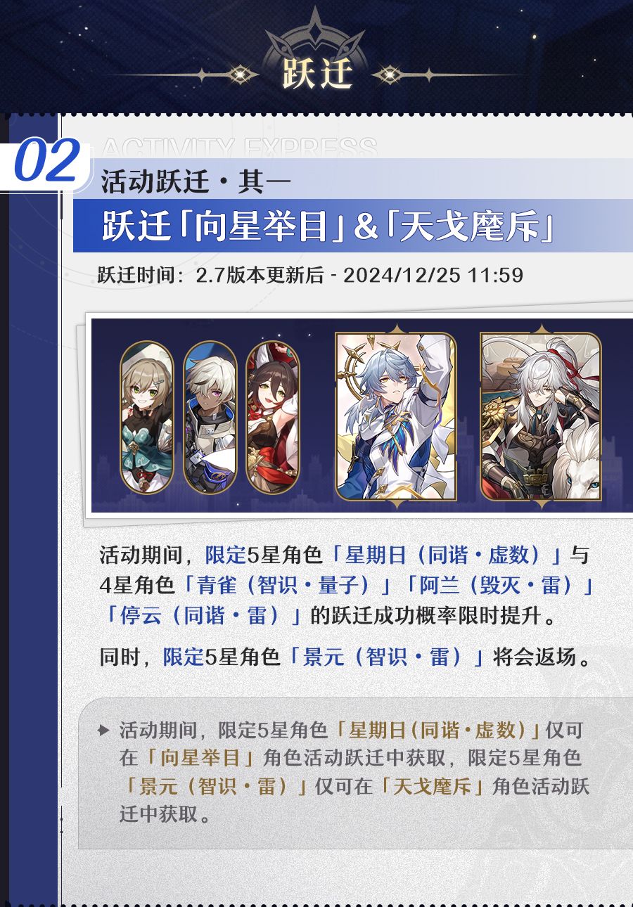 注意!!!景元将军不推荐抽取,虽然很帅,剧情里巨强,但是不适应版本,如果想玩满命满精的顶配景元可以关注我加好友可以使用哦❤️,下半版本的流萤以及忘归人都非常建议抽取,流萤有强制火击破,主角后续切换成虚数形态就是最佳队友。