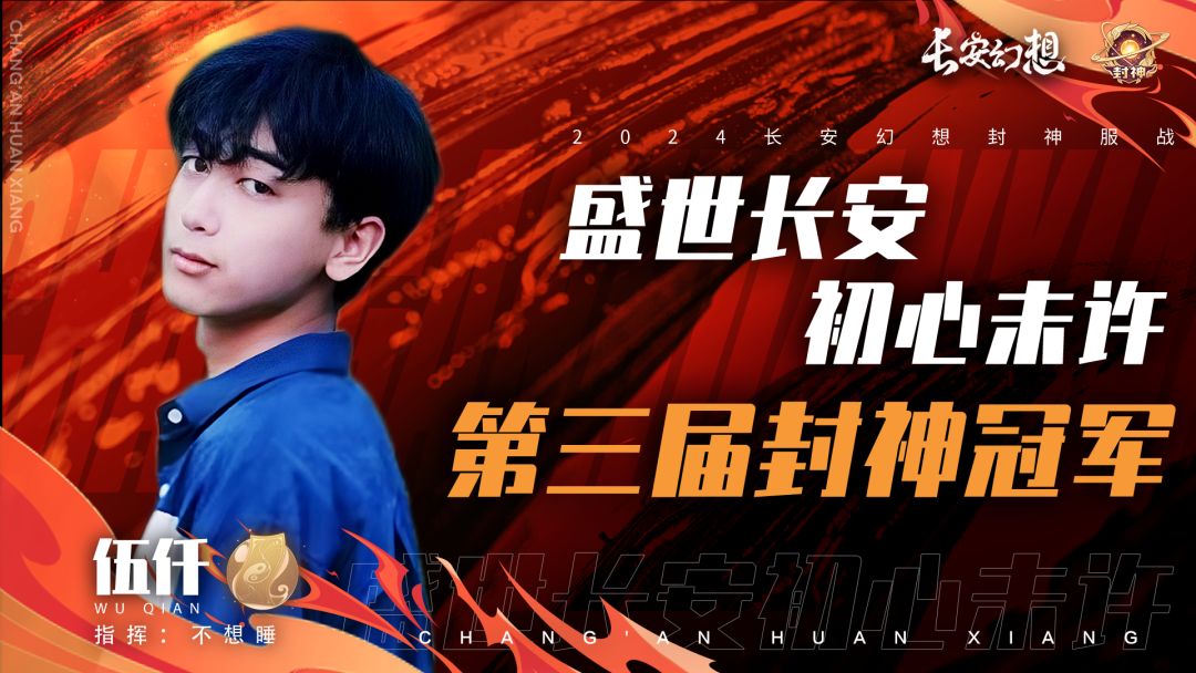 来自<盛世长安>的【初心未许】战队成员,曾获得过星火亚军、封神亚军,多次赛事决赛挑战皮皮军团,遗憾与冠军失之交臂。但本次服战赛前通过转区集结队伍战力,最终一举拿下第三届封神服战冠军,完成新神的登基!