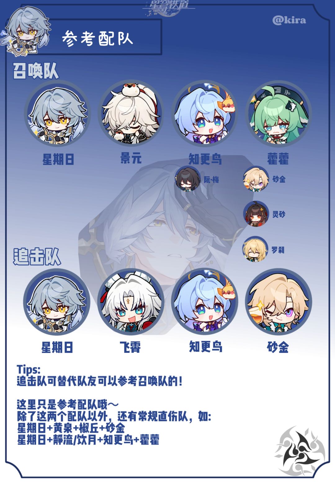 知更鸟可换成阮·梅,藿藿可以换成砂金,灵砂,罗刹等生存位角色!