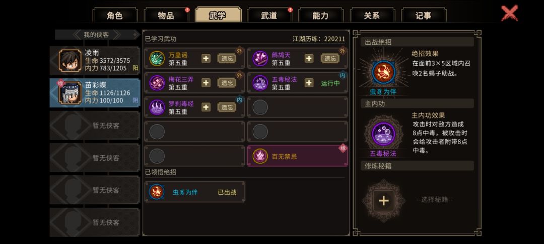 4,跑到九黎神像的时候把苗彩蝶放入队里。触发剧情,打蛇结缘。