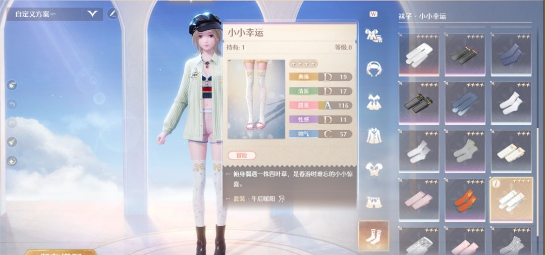 因没有一双能够一直带着幸运的袜子而苦恼,换一件装扮或许可以给她一些灵感。