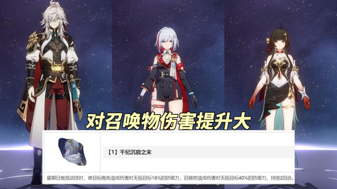 其次星魂1,战技拉条目标,角色本体无视16%防御、召唤物无视40%防御。重点是后者,很明显是给未来召唤相关体系铺路,延长星期日的出场优势版本。