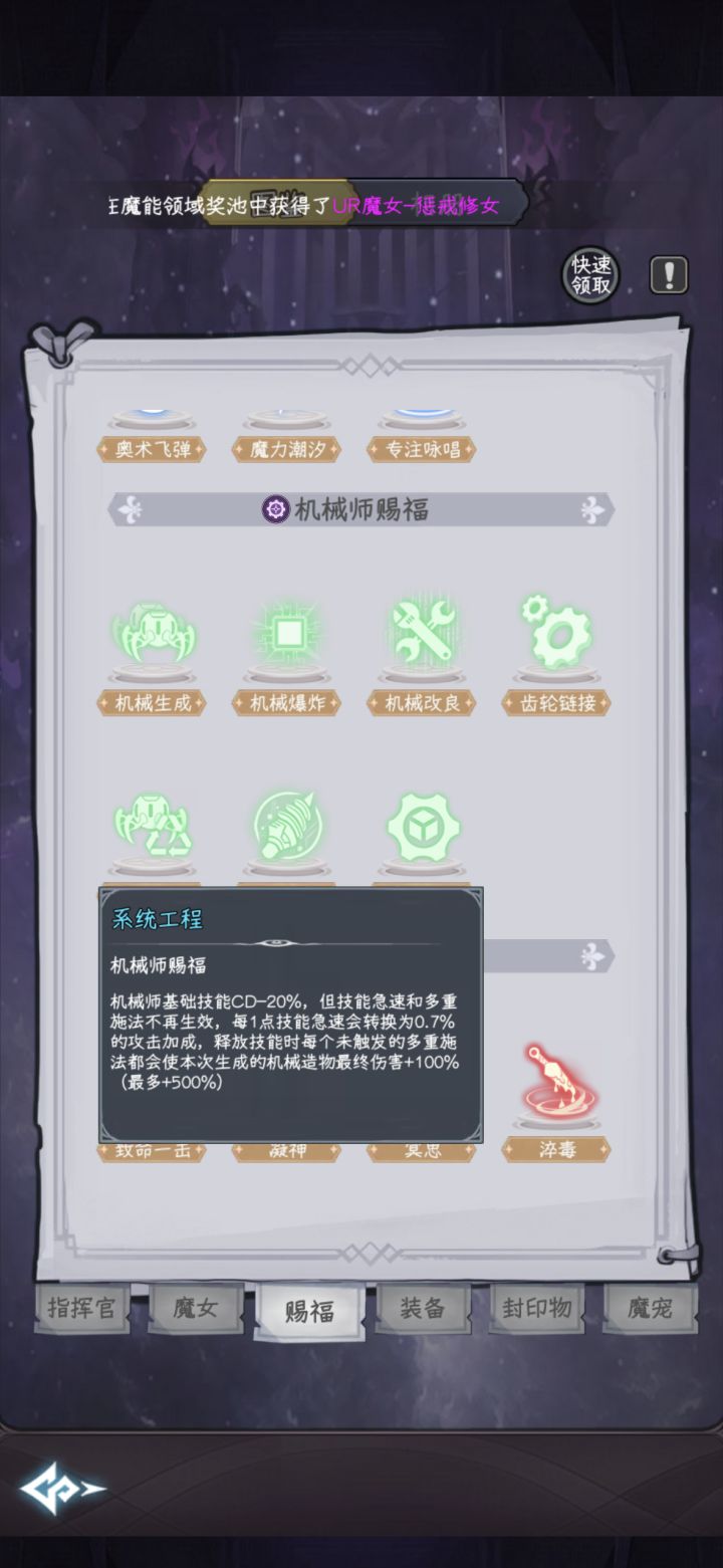 个人点评:表面看这是机械师的赐福,但是这个给机械师指挥官会非常弱,实际上这是一道非机械师指挥官的机械大餐,已经有大佬开发出了非机械师指挥官,选择系统工程以后吃机械师魔女堆攻击的新玩法,算是剑走偏锋,柳暗花明又一村。