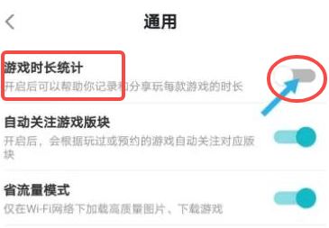4、点击通用里的“游戏时长统计”的开关按钮