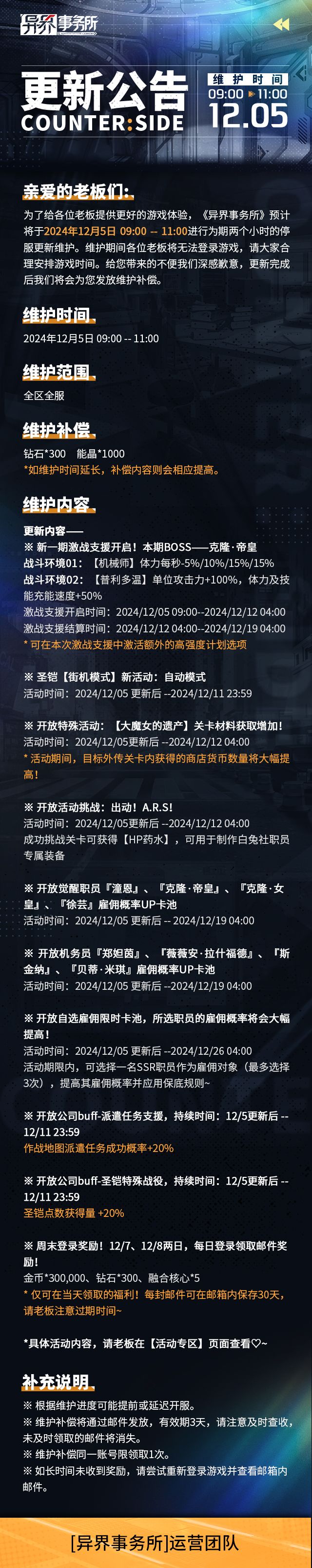 更新情报 | 觉醒职员潼恩、徐芸等概率UP,自选雇佣卡池开启