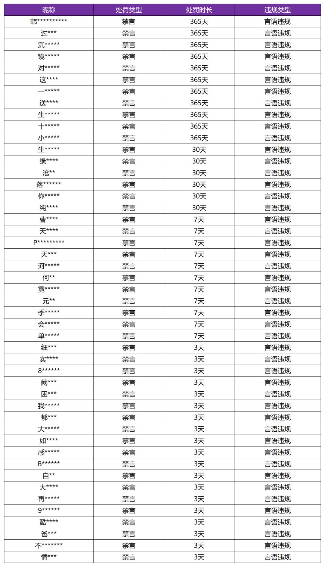 附:12月4日言语违规处罚名单(部分)