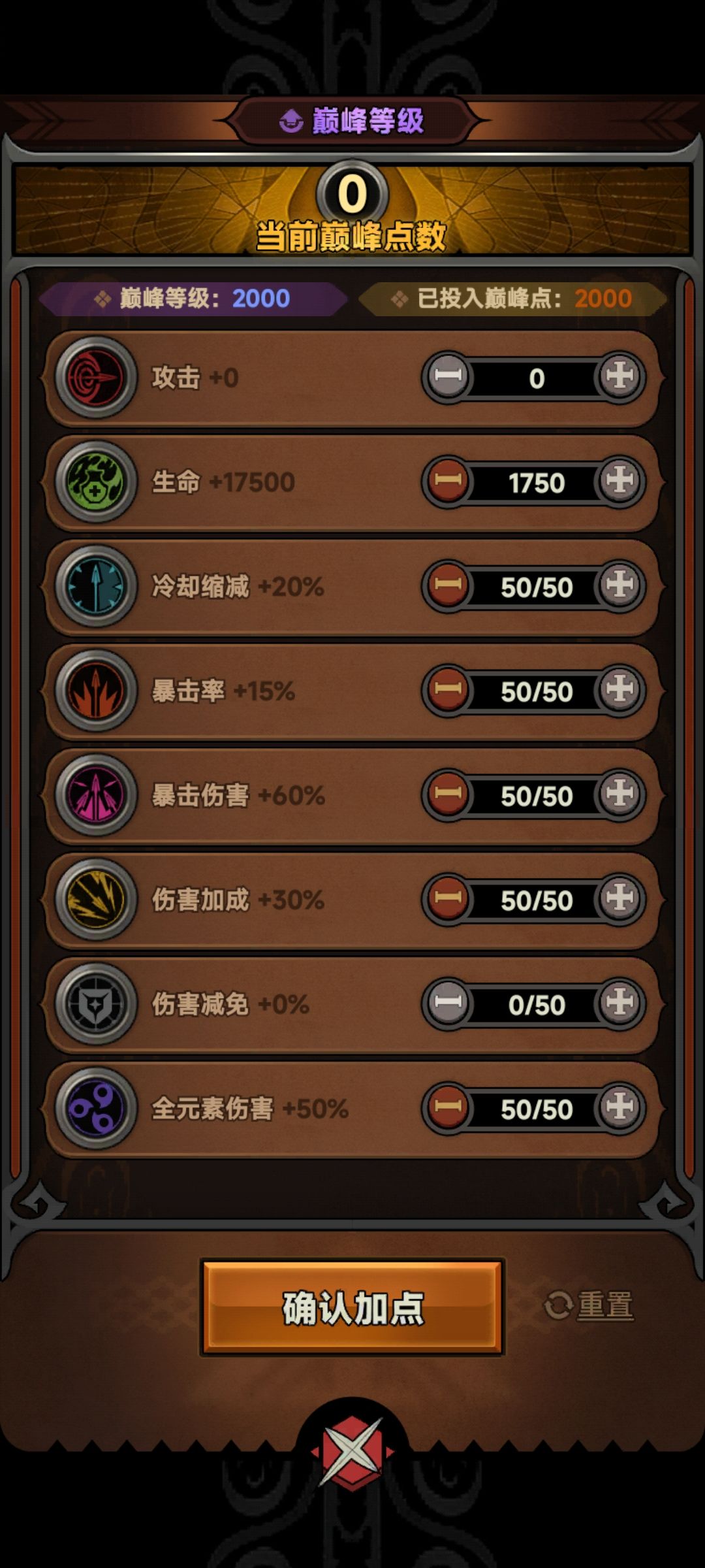 2.空余技能点是为了尽可能降低防御高效触发低血链 巅峰不点减免同理