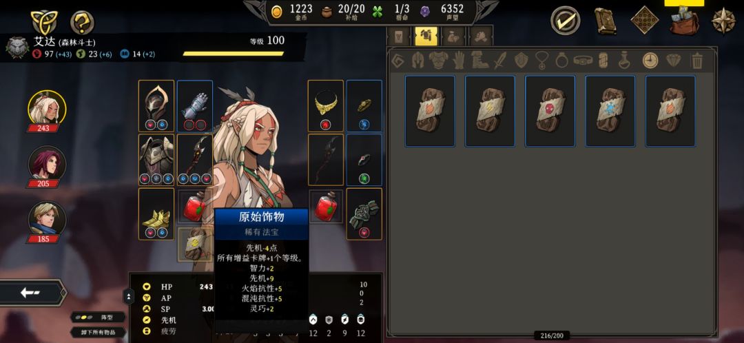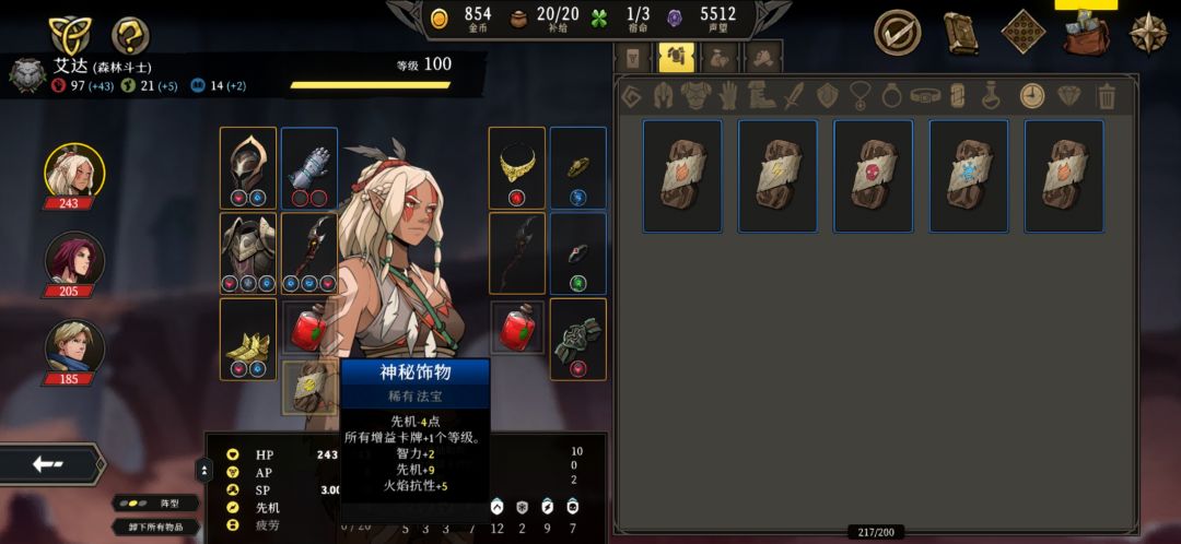 找一件白色或绿色手套,第一条属性最好是+13%力/敏/智,同时没有行动力+1属性。先扩充,S/L出行动力+1。接着附魔(游戏里的附魔就是增加装备词条,除非褪魔,否则增加的词条无法更改),S/L出行动力+1词条。
