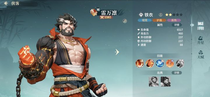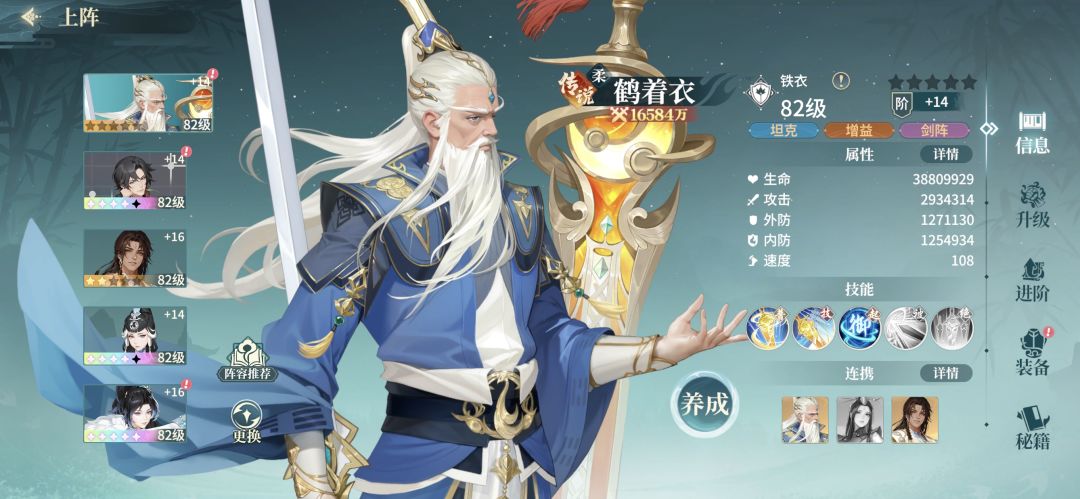 一队:杜,鱼,聂,韩,鹤(韩攻击第二高尾速,鹤防血装。以韩起手为多普攻带动杜多协战。鹤自带普攻增加剑阵对全体增益能扛并回血,韩自带回怒绝技能打)雷阵增加全体普攻伤害,阵眼位友方四次普攻多一次普攻。站位113,阵眼鹤中排鱼聂后排杜韩。魂器带火刀藏峰伞