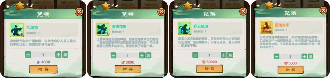 部分功法,还可以直接通过各个活动商店兑换获得哦,例如: