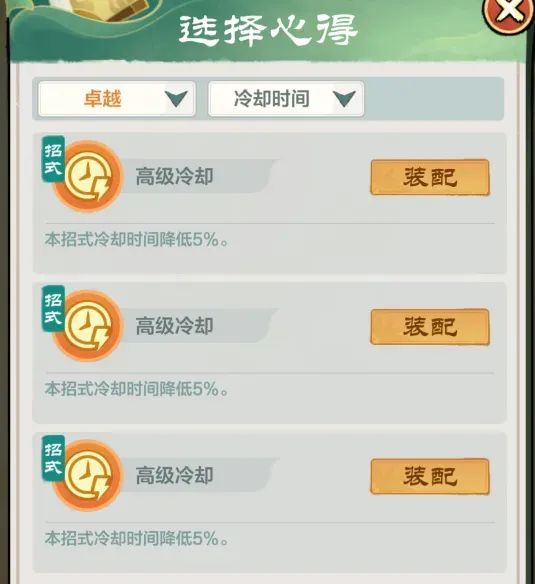 在获取功法后,我们通过配置不同的【心得技能】,让功法获得不同的属性增益,包括降低冷却时间、降低罡气、持续伤害、攻击加成、伤害抗性等,大侠可根据所选职业特点与自身需要来添加使用。